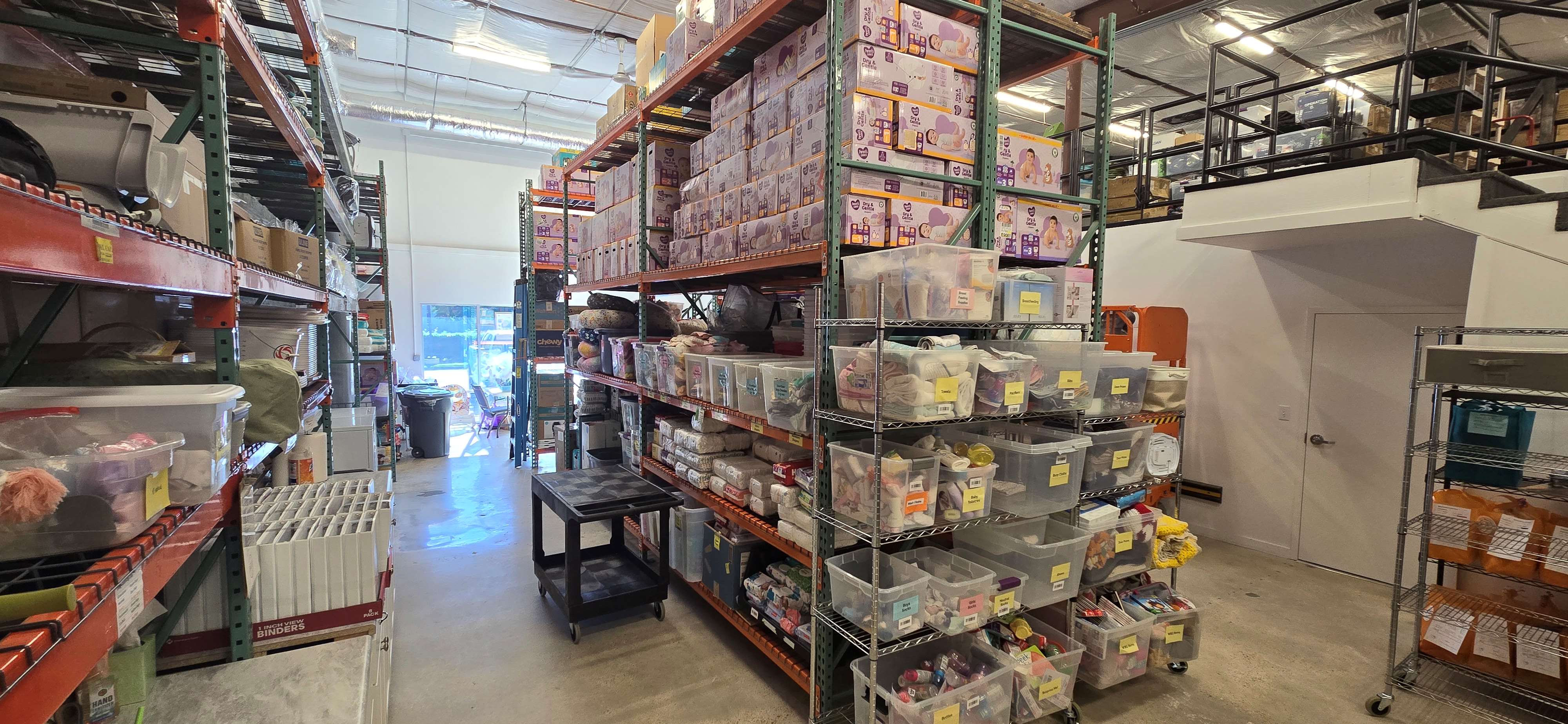 The new location includes the warehouse with the “floor to ceiling” distribution center. The building serves as the holding tank for the materials distributed to moms in all five locations.