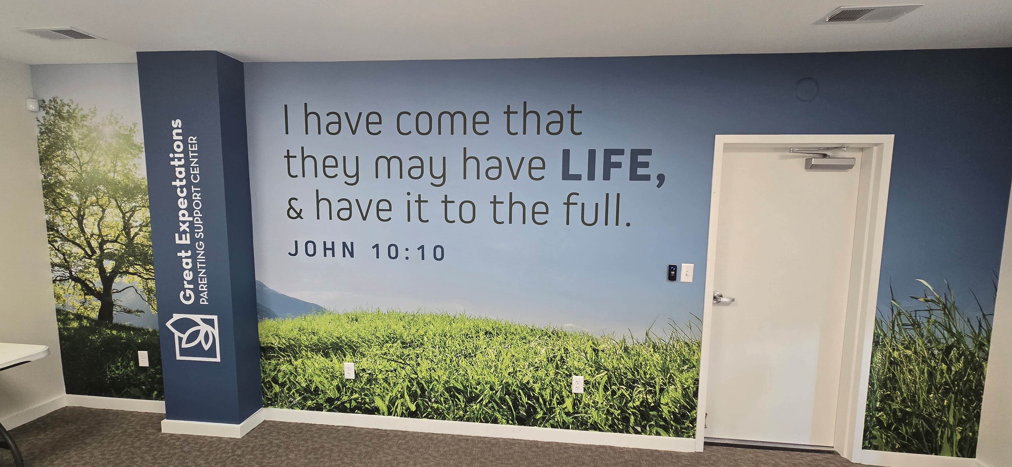 Inside the new location is a “Life Wall” which includes the scripture of John 10:10, proclaiming how Christ came so that we “may have life, and have it to the full.”