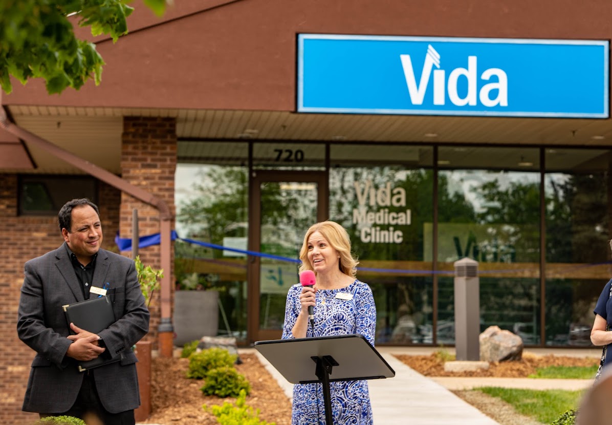 Wis. center more than doubles space to augment medical services and support: “It’s all about loving people well”Vida grand opening ribbon cutting with Executive Director Anne Tretinyak and Vida staff (Vida Medical Clinic )