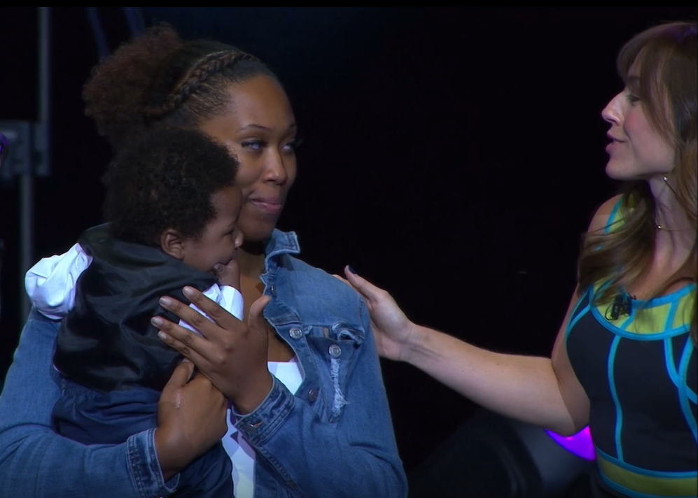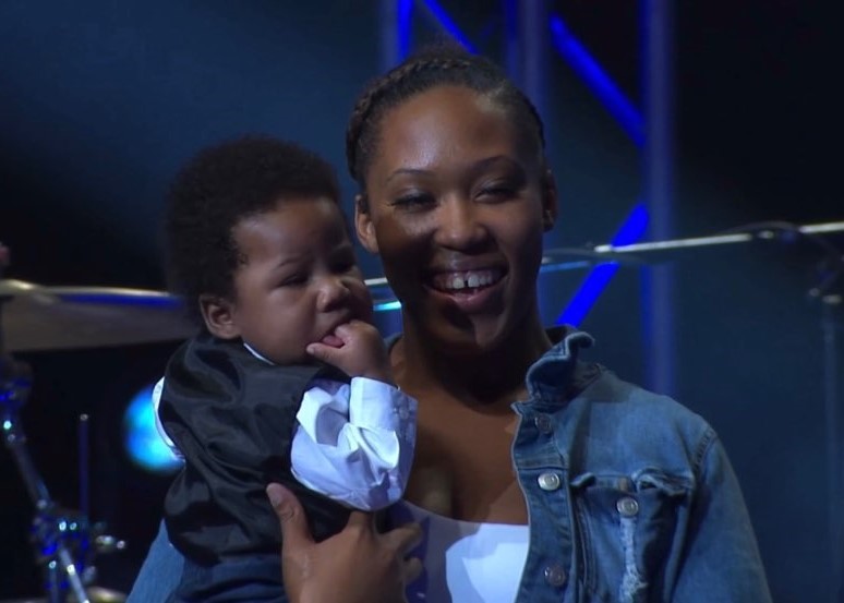 Dominique entered the stage with her five-month-old son Dominic.